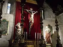 La capilla de Santo Cristo se encuentra en la entrada a mano izquierda. La talla de Cristo crucificado ya muerto, es una obra barroca de autor anónimo del siglo XVIII, de gran calidad, anatómicamente muy logrado, notandose las venas y los músculos. Las tallas de la Dolorosa y de San Juan que completan el conjunto son muy posteriores.