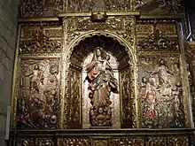 La sacristía, que está a la derecha del altar mayor conserva diversas imágenes valiosas que proceden de retablos o capillas del templo. El arco de medio punto, según comenta D. José, quizás en otro tiempo daba acceso a las caballerizas del convento.