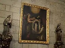 En el crucero izquierdo se encuentra un gran lienzo representando la Aparición de Santo Domingo en Soriano Cálabro (Italia). El lienzo, del entorno o original de Vicente Carducho (atribución a partir de la total semejanza con el grabado de Villafranca en la BNM INVENT/36229, sobre un original que se supone perdido de Carducho),refleja un acontecimiento o leyenda según la cual el 15 de septiembre de 1530 la Virgen se apareció a Fray Lorenzo da Grotteria y le entregó una tela con la representación de Santo Domingo. A ambos lados están las imágenes de San Antonio de Padua y Santa Rita de Casia.