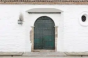 Tiene el arco central flanqueado por cuatro columnas salomónicas enroscadas con racimos de uvas a lo largo de su fuste con sus respectivas bases y capiteles, que son muy particulares al estar compuestos por hojas de acanto pero distribuidas en forma semejante al orden palmiforme y no tanto al corintio. Un arquitrabe también se hace presente sobre los pilares, que de forma escalonada sustentan a un nicho de forma triangular que no contiene imagen alguna pero si dos volutas a los lados en forma de motivos vegetales.