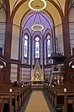Otzen fue también quien elaboró los planos del interior de la nave, con diseños específicos del altar, el púlpito, la pila bautismal y los asientos, como también su distribución, generando una sensación de armonía y cohesión. La iglesia de santa Gertrudis es considerada una de las obras más bellas de este arquitecto, y un ejemplo característico de la arquitectura neogótica en sus primeros días.