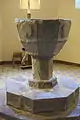 A los pies del templo se ubica una pila bautismal del siglo XV en la que fue bautizado Francisco de Jaso y Azpilicueta o San Francisco de Javier.[5][2] Es una pila octogonal, de gótico tardío, decorada con labra de escudos y círculos.[3]