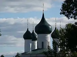 La primera iglesia en el sitio fue comisionada en 1584 por Basil Kondaki, un comerciante griego rico, con el fin de evitar el proyecto de construcción de una iglesia luterana en Kondakovo. Una pequeña iglesia parroquial está dedicada a la Presentación de Jesús en el Templo. Este edificio barroco tardío incorpora el refectorio del siglo XVII, una parte sobreviviente de una iglesia anterior. Un campanario de iglesia que databa de 1745 fue demolido en el siglo XX.