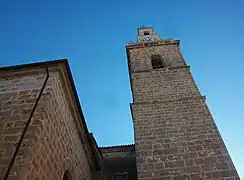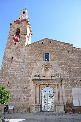 La iglesia consta de una única nave, con capillas entre los contrafuertes. La fachada destaca por su sencillez y sus dos portaladas renacentistas. El esbelto campanario de planta cuadrada se utilizó como torre de vigilancia hasta que a mediados del siglo XIX le fue añadido un remate.[3]
