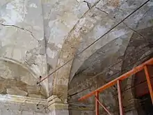 El presbiterio y el ábside se cubren con bóveda de cañón y cúpula de cuarto de esfera. Las paredes de ambos también de sillería son lisas y carecen de adornos. El coro se cubría con una bóveda de arista.