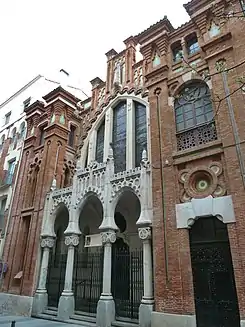 El exterior destaca por la mezcla de estilos: neogótico, neomudéjar e incluso neonazarí. El interior dispone de una sola nave, dividida en dos tramos y cabecera cuadrada cubierta con bóveda nervada octogonal con linterna central. A los pies, por donde se accede, se encuentra un coro alto, tamizado de color por vidrieras de estilo modernista.