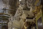 - Tercer altar: dedicado a San Nicolás de Tolentino, un grupo de madera del siglo XVIII que representa al santo, por Agostino Storace, un alumno de Maragliano, fuertemente remodelado en el siglo XIX.[3]