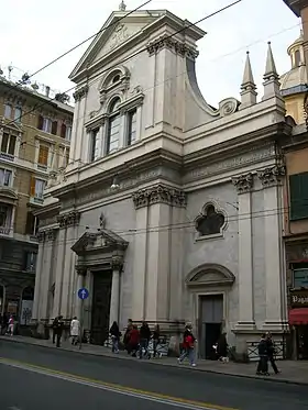 Los agustinos obtuvieron la autorización de la República de Génova para construir un nuevo convento en el área donde se encuentra hoy la iglesia actual. La construcción tuvo lugar de 1681 a 1706, en un proyecto atribuido a Piero Antonio Corradi, aunque la iglesia abrió para el culto ya en 1693 bajo el patrocinio de las familias genovesas Durazzo , Della Torre, Canevari y Lercari-Castiglione. En 1769 se terminó la cúpula , diseñada por Simone Cantoni. En 1864 se construyó la fachada.[2][3]