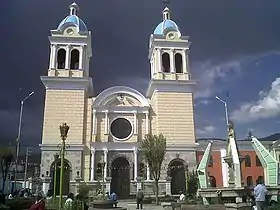 La arquitectura del templo está compuesta de tres naves, una cúpula de 40 metros, un crucero, torres de 45 metros, y cuenta con una planta de Cruz latina. Estos ciclópeos cimientos fueron logrados con toneladas de piedra, cascajo, cemento y hierro. Las esbeltas naves, arcos, cruceros y altares forman un armónico conjunto que hace de este espacio el mejor monumento de la ciudad y la iglesia más majestuosa del valle.
