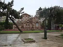 Con la conquista de la ciudad en 1430 por los turcos otomanos, la iglesia fue convertida en una mezquita, llamada Kazancilar Camii («Mezquita de los caldereros»). Sirvió como mezquita hasta el final de la ocupación otomana en 1912. El edificio pasó por una restauración en 1934 después de los terremotos calcídicos de 1932.[1][4][5]