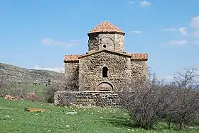 El edificio, que mide 9.7 × 10.5 m, se estableció en un plan triconcha, con los transversales mucho más estrechos y bajos que el santuario y el ala occidental. Esto hace que el edificio sea algo alargado en el eje este-oeste. Construida principalmente de adoquines; caliza revestida y bloques de travertino se utilizan en elementos estructurales y decorativos importantes. Se puede acceder al edificio a través de tres puertas, todas en el ala occidental. El ábside sobresaliente del santuario está flanqueado por dos pastoforios . La transición de la bahía rectangular al círculo de la cúpula se realiza a través de trompas. El tambor de la cúpula es octogonal, perforado con cuatro ventanas y adornado con arcos decorativos. Tanto las paredes exteriores como las interiores estaban enlucidas. La iglesia fue reparada sustancialmente y un campanario fue anexado al muro oeste en el siglo XVIII. La restauración sistemática tuvo lugar entre 1952 y 1954[2] y nuevamente en 2007.