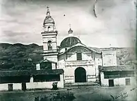Iglesia Matriz de Jauja - 1842 - La Iglesia con una sola torre, que al parecer debió haberse desplomado después de 1824, según Edgardo Rivera Martínez.