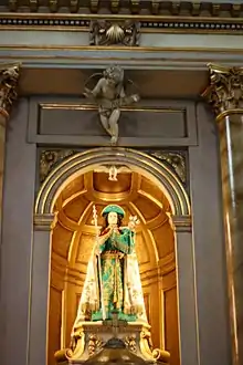 - Figura de la Fe en el centro del frontón partido y de las torres gemelas