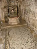 Al reconstruirse la iglesia en su forma definitiva, se cuidó de incorporar todos los elementos medievales y bizantinos que salieron a la luz durante las excavaciones, entre los que se destaca una cisterna.