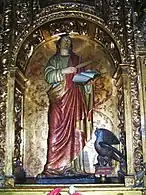 - Capilla de San Juan Evangelista. En el lado derecho del crucero. Su retablo, realizado hacia 1693 por Santiago de Castaños a la par que el retablo de la Capilla de la Virgen del Carmen, situada justo en frente, presenta lienzos de San Francisco de Asís, San Francisco de Paula y la Virgen de Begoña. La talla central de San Juan es una copia elaborada en el siglo XIX. Originalmente esta capilla estuvo consagrada a San Francisco Javier.