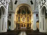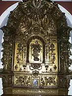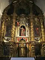 Rico es el mobiliario de la iglesia, distribuido en un serie de retablos barrocos de dimensiones medianas y acabado semicircular que presiden las capillas devocionales emplazadas en las naves laterales, amén de la Capilla Mayor, que contiene un gran retablo churrigueresco. El conjunto es bastante homogéneo en cuanto a proporciones y estilo. Comenzando por el lado de la izquierda o septentrional, tenemos: