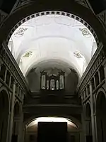 A los pies del templo, en piso elevado, se dispone el coro que acoge el órgano, un instrumento de la casa alemana Walker fabricado en 1885.