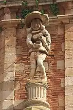 Las fachadas son de fábrica de ladrillo visto con imposta, cornisas y pilastras de piedra. Cuenta con dos portadas de grandes arcos. En la primera destaca una portada-retablo dentro de un arco rehundido, con cuerpo inferior de columnas toscanas y superior de columnas salomónicas, sobre paramento almohadillado. En el centro hay un relieve de Cristo y el milagro de los ladrones.[1]