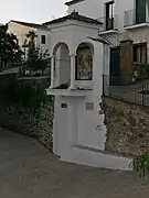 En la placita que se sitúa junto a la portada principal hay un pequeño humilladero de finales del siglo XVIII. Fue reconstruido en 1938 y alberga un retablo cerámico de la Santísima Trinidad de Mensaque Rodríguez.[3]
