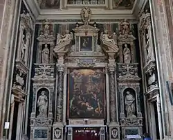 La primera capilla, de los Santos Mártires, presenta una decoración de mármol datable a la segunda década del siglo XVII realizada por Costantino Marasi, esculturas de 1613 de Girolamo D'Auria y Tommaso Montani que representan a San Esteban y a San Lorenzo, un retablo de Azzolino con la Virgen, el Niño y los Santos Mártires, y finalmente frescos de Corenzio de la primera década del siglo XVII.[13]
