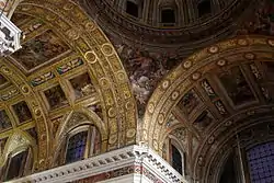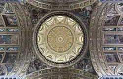 La cúpula, reconstruida por Ignazio di Nardo y consolidada por una estructura de hormigón armado, presenta un casquete esférico con ventanas de luneta; las decoraciones de estuco retoman el motivo del casetonado mientras que en las pechinas de la falsa cúpula hay frescos de los cuatro evangelistas, restos del ciclo de principios del siglo XVII de Giovanni Lanfranco.[12]