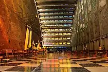 En la capilla penitencial hay una franja de vitrales que muestran expresiones de la Crucifixión de Jesús. En el torno de la capilla se muestra el Vía Crúcis en el piso hechas de hierro negro sobre un fondo de cemento y piedra pómez. Al final de esto hay una figura de Jesús resucitado hecho de hierro.[4]