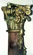 - Detalle de fuste y capitel de columna restaurada en la parroquial de Casas Bajas (Valencia), correspondiente al antiguo retablo mayor del Convento de San Guillermo de Castielfabib.
