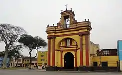 Posee una planta rectangular, de una sola nave y bóveda de cañón. Su portada de columnas jónicas y frontón liso es armoniosa y proporcionada, dentro de la notable corrección académica que emana de todo el conjunto, esta se encuentra a modo de arco dentro de la cual se encuentra la portada de líneas clásicas. Cabe resaltar la presencia de una antigua cruz del camino hacia el lado izquierdo de la portada, totalmente renovada.