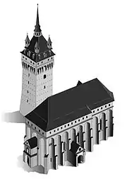 La construcción de una gran iglesia fortificada del gótico tardío se inició en 1493 en el sitio de una basílica románica,[1][2] y la estructura principal se terminó en 1496.[3] La iglesia estaba dedicada a san Esteban I de Hungría.[4] Aún permanecen algunos pagos de las autoridades de Sibiu fechados entre 1494 y 1525 por la construcción de la iglesia. Entre 1503 y 1507 el pueblo recibió una indulgencia papal por petición de un feligrés, y dejó de estar obligado a acuartelar tropas o mandar provisiones al ejército del Reino de Hungría.[1]