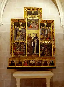 La parroquia atesora un importante conjunto de bienes muebles entre los que destaca el Retablo de San Lorenzo y San Pedro de Verona, uno de los escasos retablos medievales que se conserva en el mismo templo para el que fue concebido. Según un documento notarial, fechado el 23 de enero de 1460, fue concertado por Ramón Sanjoan, albacea del mercader Joan Espígol, con el pintor valenciano Jaume Baço “Jacomart”, aunque su ejecución final fue realizada por Juan Rexach (Joan Reixach). Según el encargo, la obra debía realizarse en el plazo de un año, debía medir diez palmos de ancho y trece de alto, y tenía que estar decorada y pintada con buenos colores, por el precio de cuarenta y dos libras y diez sueldos. En la espiga había de tener el Crucifijo, a un lado la Virgen María, al otro San Juan Evangelista. En medio del retablo San Lorenzo y San Pedro Mártir, de la Orden de Predicadores y a un lado y otro dos historias de los mencionados santos. En el bancal, la Piedad; a la derecha la Virgen María y a la izquierda San Juan, Santa Lucía y San Agustín. Fueron testigos Jaime Sastre y Sancho Aznar. Se le conoce como retablo de San Pedro Mártir y también como retablo Espígol, porqué se pagó con sus bienes.