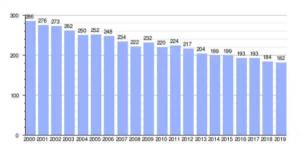 Gráfica de evolución demográfica de Iglesiafeita entre 2000 y 2019 |