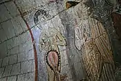 - En la Iglesia nueva predominan paneles de rico índigo pintados con pigmentos de piedra lapislázuli representando escenas del Nuevo Testamento, milagros de Cristo, los primeros diáconos, episodios de la vida de Basilio el Grande (uno de los padres de la Capadocia), representaciones de Leades (uno de los Cuarenta Mártires) y san Menas. La Iglesia nueva fue excavada junto al muro oriental de la iglesia vieja y decorada con arcos de estilo oriental y una serie de arcadas. La iglesia nueva es mucho más grande que la vieja y por lo tanto tiene mucha más decoración. Hay dos ciclos de frescos principales y gran cantidad de santos, clérigos y mártires distribuidos por todas las paredes. Al igual que en la Iglesia vieja, el ciclo cristológico es la decoración más elaborada y extensa de la Iglesia nueva. Localizado en la nave principal, la Infancia, los Milagros y la Pasión, son descritos en pinturas de gran calidad. La narrativa comienza en el lado norte de la nave y se va desarrollando por encima de las arcadas. Las escenas más importantes fueron reservadas para localizaciones más prominentes; la Ascensión, Bendición de apóstoles (Pentecostes) y la misión de los apóstoles están situados en la zona centro y sur de la bóveda de a nave.[3]