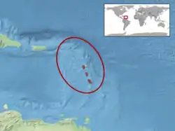 Desde el norte de las Antillas Menores, de Anguila a Martinica.[2][1]