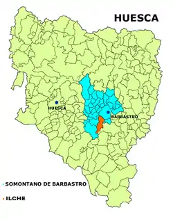 Ilche es un municipio de la comarca del Somontano de Barbastro, en la provincia de Huesca, situado en el valle del Cinca, en la carretera A-1223, entre Berbegal y Monzón. Su distancia a Huesca es de 56 km.