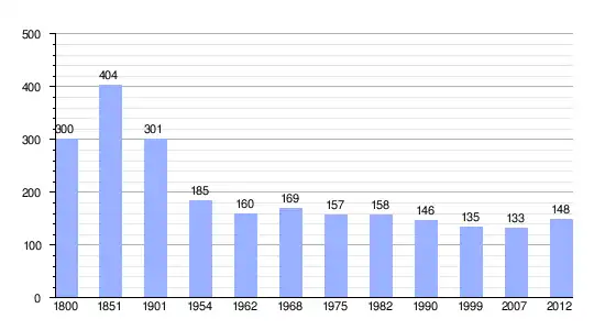 Gráfica de evolución demográfica de Ilharre entre 1800 y 2012 |