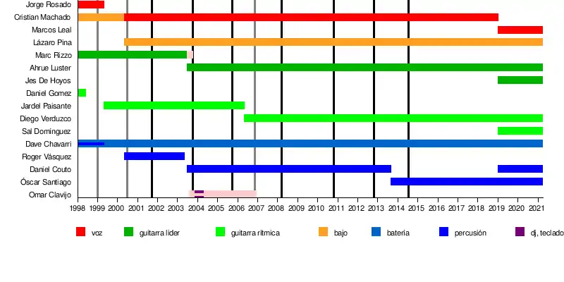 - Cristian Machado – voz (1999-2019), bajo (1998-1999)