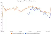 - Arkhipov, Ilya (24 de enero de 2013). «Putin Approval Rating Falls to Lowest Since 2000: Poll». Bloomberg. Consultado el 22 de junio de 2013.