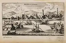 Durante ese período, Yemen fue el único productor de café en el mundo.[23] El país estableció relaciones diplomáticas con el Imperio safávida de Persia, los otomanos del Hiyaz, el Imperio mogol en India y Etiopía. Los Fasilides de Etiopía enviaron tres misiones diplomáticas a Yemen, pero las relaciones no se convirtieron en una alianza política como esperaba Fasilides, debido al ascenso de poderosos feudalistas en el país.[24] En la primera mitad del siglo XVIII, los europeos rompieron el monopolio de Yemen sobre el café sacando cafetos de contrabando y cultivándolos en sus propias colonias en las Indias Orientales, África Oriental, las Indias Occidentales y América Latina.[25]