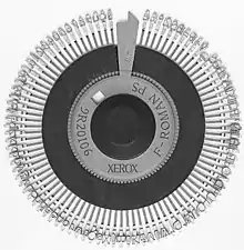 Contiene todos los caracteres en una esfera que gira sobre un soporte móvil hasta colocar el carácter frente a la cinta y golpearla para imprimir el carácter en el papel.