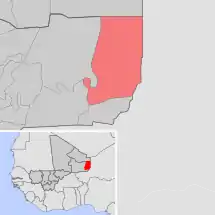 Se encuentra ubicada al este del país, en el desierto del Sahara, junto al wadi Ezgeuret, y cerca de la frontera con Níger.