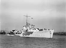 en los últimos momentos del ataque aéreo, se observó que tres barcos de alta velocidad se acercaban al buque desde el noreste con una demora relativa de aproximadamente 135[grados] a una distancia de unas 15 millas[náuticas]. El barco en ese momento seguía en rumbo [hacia el oeste] 283[grados], velocidad verdadera, desconocida, pero se cree que supera los cinco nudos.[18]: 38