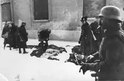 ![]() Cuerpos de civiles asesinados en las barracas de la calle Futoška, en Novi Sad (enero de 1942). | ||