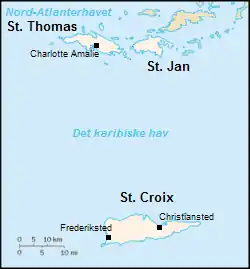 ![]() Ubicación de las Indias Occidentales Danesas | |||||||||||||||||||||||||||||||
