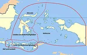 Las autoridades neerlandesas, después de varios cambios en la administración de las islas orientales de las Indias Orientales, establecieron la región del Gran Este en 1938. [1]Cuatro años más tarde, los japoneses la invadieron y esta área quedó bajo el control de la armada imperial japonesa. [2]Tras la rendición japonesa y la declaración de independencia de Indonesia en agosto de 1945, los republicanos indonesios comenzaron a luchar para asegurar la independencia de Indonesia del control colonial neerlandés. Sin embargo, los administradores neerlandeses respaldados por tropas australianas llegaron a la zona previamente controlada por la armada japonesa e impidieron que los republicanos establecieran una administración. [3]
