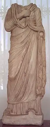 [[Las mujeres llevaban una túnica larga y holgada, la stola que tenía muchos pliegues y que para las [[nobles se adornaba con franjas o ricos bordados. Sobre ella vestían la palla, un manto parecido a la toga) viril que cubría la espalda y, a veces, la cabeza. El traje en la Antigua Roma constaba de dos tipos de piezas como el griego, llamadas indutus o indumenta (las interiores) y amictus (las exteriores).[1]