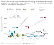 La infraestructura de carga para vehículos eléctricos en India no ha sido plenamente desarrollada todavía. Ha habido iniciativas para instalar estaciones de recarga comunitarias, como en el caso de las estaciones de recarga de Plugin India .[47] Nuevos informes han recogido la existencia de planes para proporcionar puntos de recarga solares en las gasolineras del país.[48][49][50]