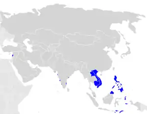 El español en el contiene asiático es hablado por minorías en las Filipinas por unos 3.016.773[1][2] de hablantes, aunque el español en este país ha sido importante en la época colonial perdiendo su hegemonía en el último siglo desde la ocupación estadounidense del país (1898) por la sustitución del inglés. Si bien aún persiste una forma de criollo español llamado chabacano hablado por más de medio millón de filipinos en Zamboanga, Basilán, Cotabato, Davao y otras zonas del país. Del español también existe de forma subyacente en Filipinas: en nombres y apellidos, topónimos de calles y ciudades, y en incontables palabras en tagalog, ilocano, cebuano y entre otras lenguas nativas. En los últimos años está resurgiendo el interés por promover la lengua española, oficial durante 400 años en Filipinas, como un patrimonio lingüístico más del país. Además Filipinas cuenta con dos instituciones dedicadas a la enseñanza y promoción de la lengua española: el Instituto Cervantes y la Real Academia de la Lengua Filipina (correspondiente de la Real Academia Española) ambas en Manila. Cada 30 de junio se celebra el Día de la Amistad Hispanofilipina, que pretende rescatar los nexos históricos y socioculturales existentes entre España y las Filipinas, entre ellos, el idioma español.