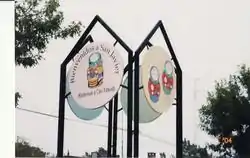 ![]() Señal de bienvenida bilingüe español-ruso en San Javier. | ||