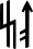 Tod | Muerte | La Todesrune es la versión invertida de la Lebensrune o "runa de la vida". Se basó en la ᛦ o runa Yr, que originalmente significaba "tejo".[7] Fue utilizado por las SS para representar la muerte en documentos y marcadores de sepulcros en lugar del símbolo † más convencional utilizado para tales fines.[3] |