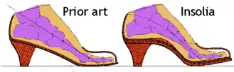 Ilustración mostrando las características del pie en la insolia (original de la Original: U.S. patent 5,782,015),.